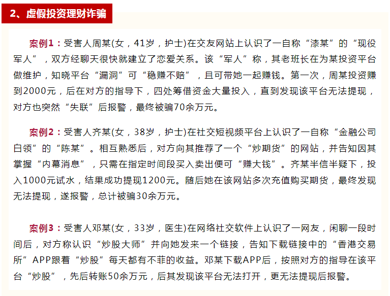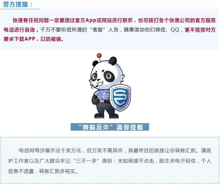 年來,公安機關以前所未有的力度和舉措打擊治理電信網(wǎng)絡詐騙犯罪,有效遏制了案件高發(fā)態(tài)勢。但電信網(wǎng)絡詐騙手段不斷翻新,形勢依然嚴峻,騙子更是將詐騙對象瞄準了醫(yī)護群體,讓不少醫(yī)護人員身心財產(chǎn)遭受雙重打擊。“熊貓反詐”通報一批我省醫(yī)療衛(wèi)生系統(tǒng)工作人員被騙典型案例,望廣大醫(yī)護人員提高警惕,強化防范意識,避免上當受騙。